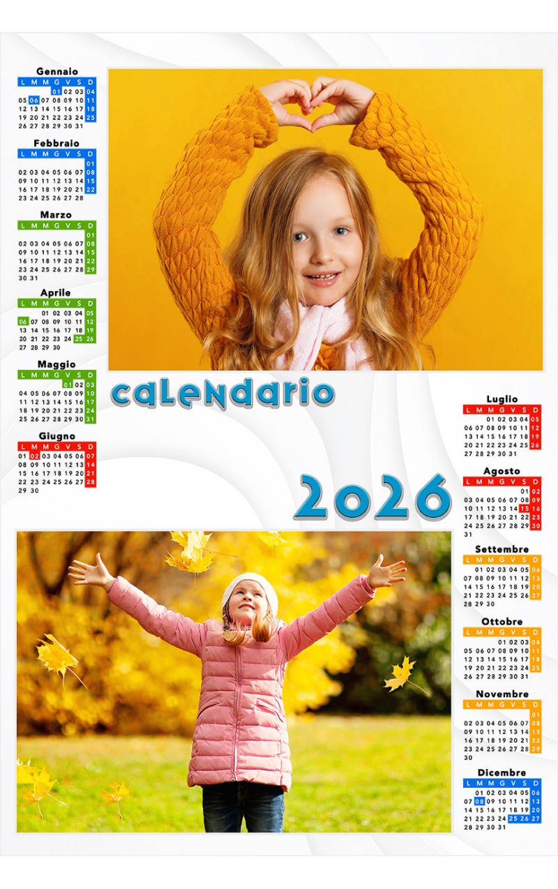 Presonalizza il tuo calendario 2 foto orizzontale, scegli lo scatto che preferisci e rendilo unico inserendo anche un nome o una dedica.