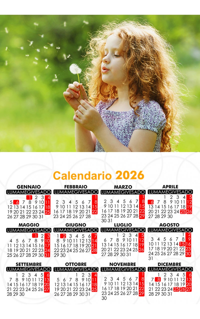 Il calendario Relax, ti permette di personalizzare il tuo calendario 1 pagina con uno scatto in orizzontale.