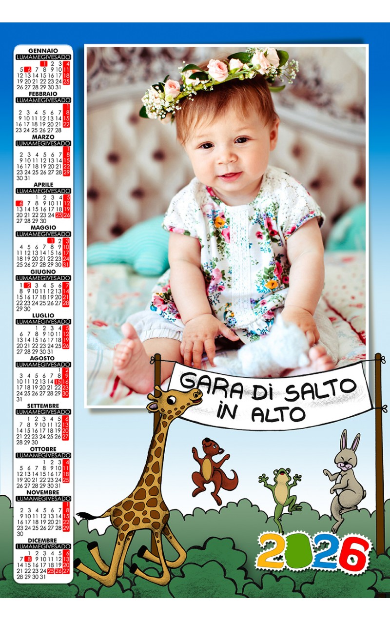 Personalizza il Calendario Salto in Alto, scegli la foto che preferisci e se vuoi scrivi una dedica o il nome della persona presente nella foto.