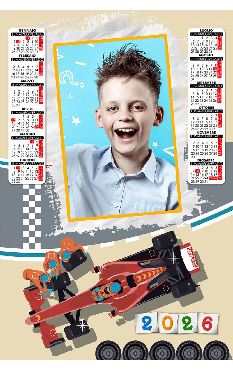 Il foto calendario Formula 1 viene stampato nel formato 30x45 carta fotografica a tua scelta lucida o opaca, puoi personalizzare il calendario 1 pagina inserendo una foto verticale tra i tuoi scatti più belli.