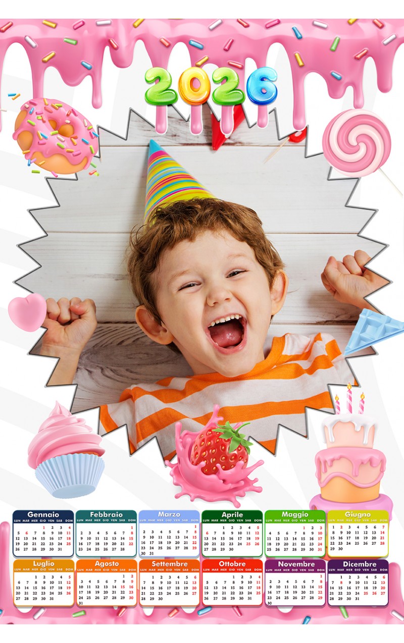 Il foto calendario Dolci viene stampato nel formato 30x45 carta fotografica a tua scelta lucida o opaca, puoi personalizzare il calendario 1 pagina inserendo una foto orizzontale tra i tuoi scatti che ritieni più belli.