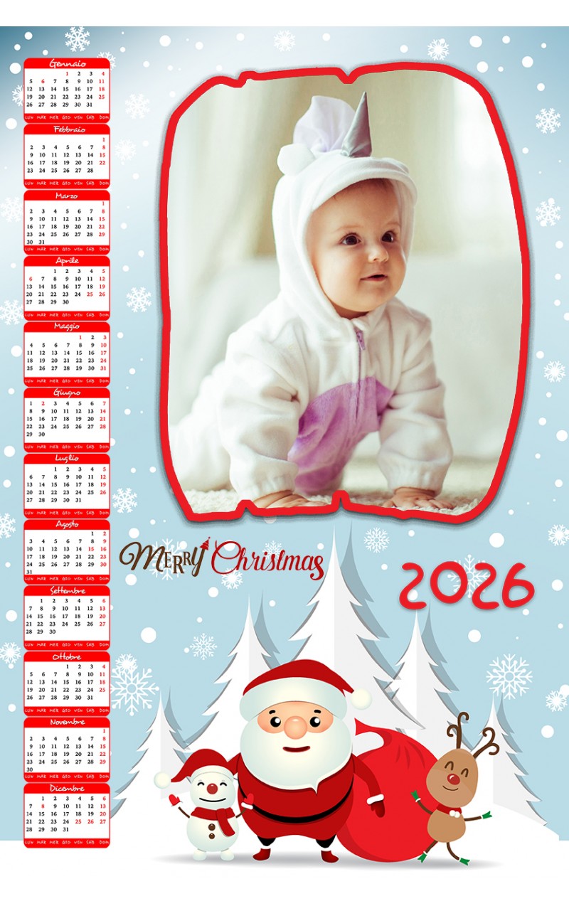 Il foto calendario Babbo Natale viene stampato nel formato 30x45 carta fotografica a tua scelta lucida o opaca, puoi personalizzare il calendario 1 pagina inserendo una foto verticale tra i tuoi scatti più belli.