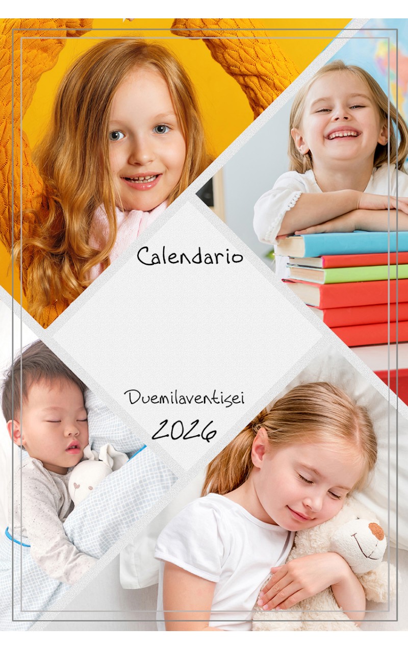 Il Calendario 4 foto triangolo ti offre la possibilità di inserire 4 immagini per pagina tra le tue foto più indimenticabili più una in copertina.