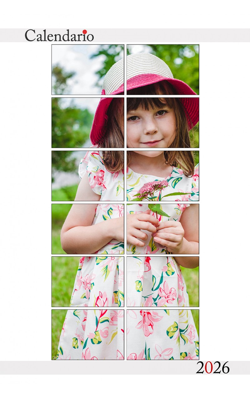 Il Fotocalendario 13 pagine viene stampato su Carta Patinata da 200 Gr. nel formato 20x30 o 30x45 e rilegato con spirale e gancio metallico.