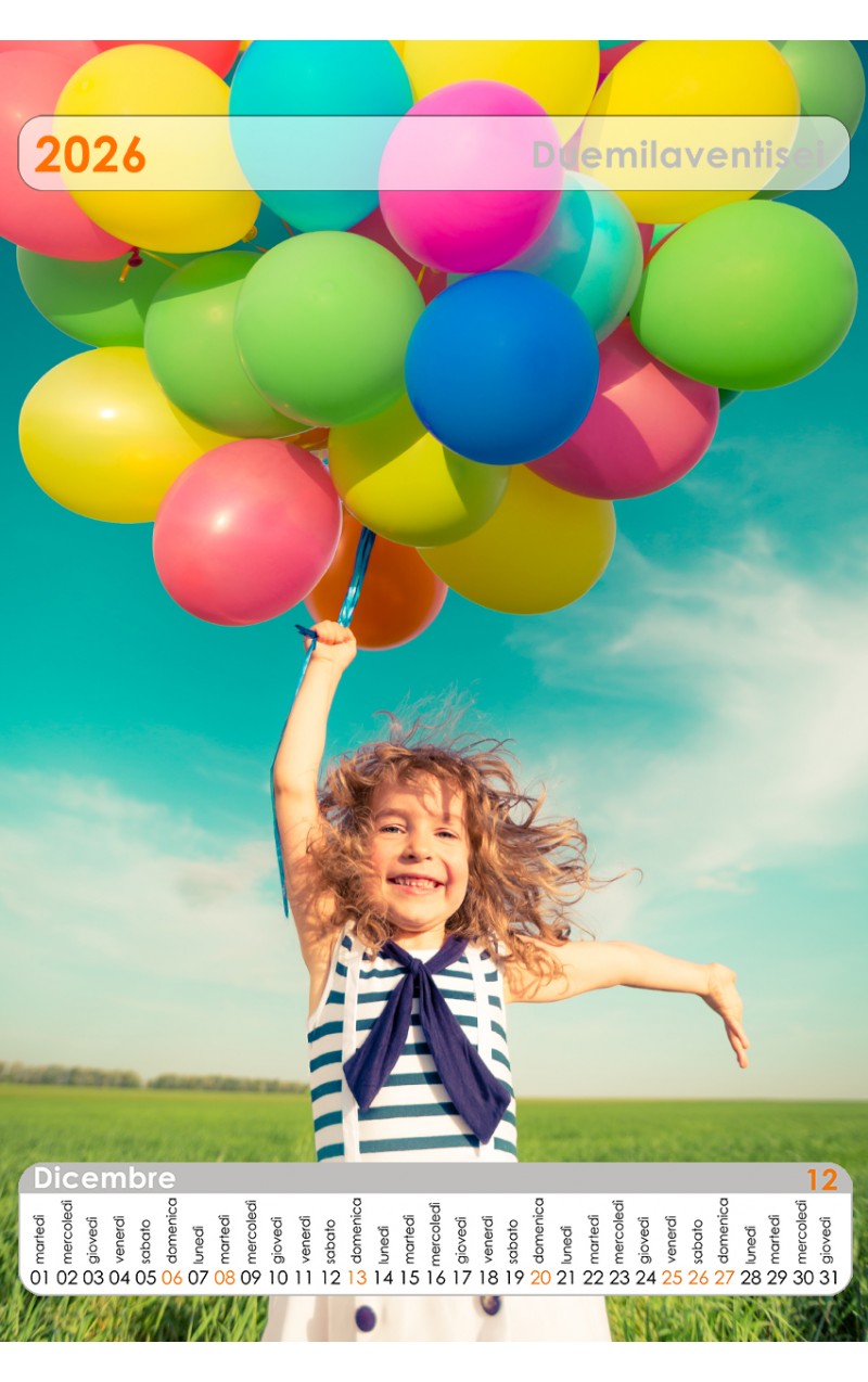 Il Fotocalendario 13 pagine viene stampato su Carta Patinata da 200 Gr. nel formato 20x30 o 30x45 e rilegato con spirale e gancio metallico.