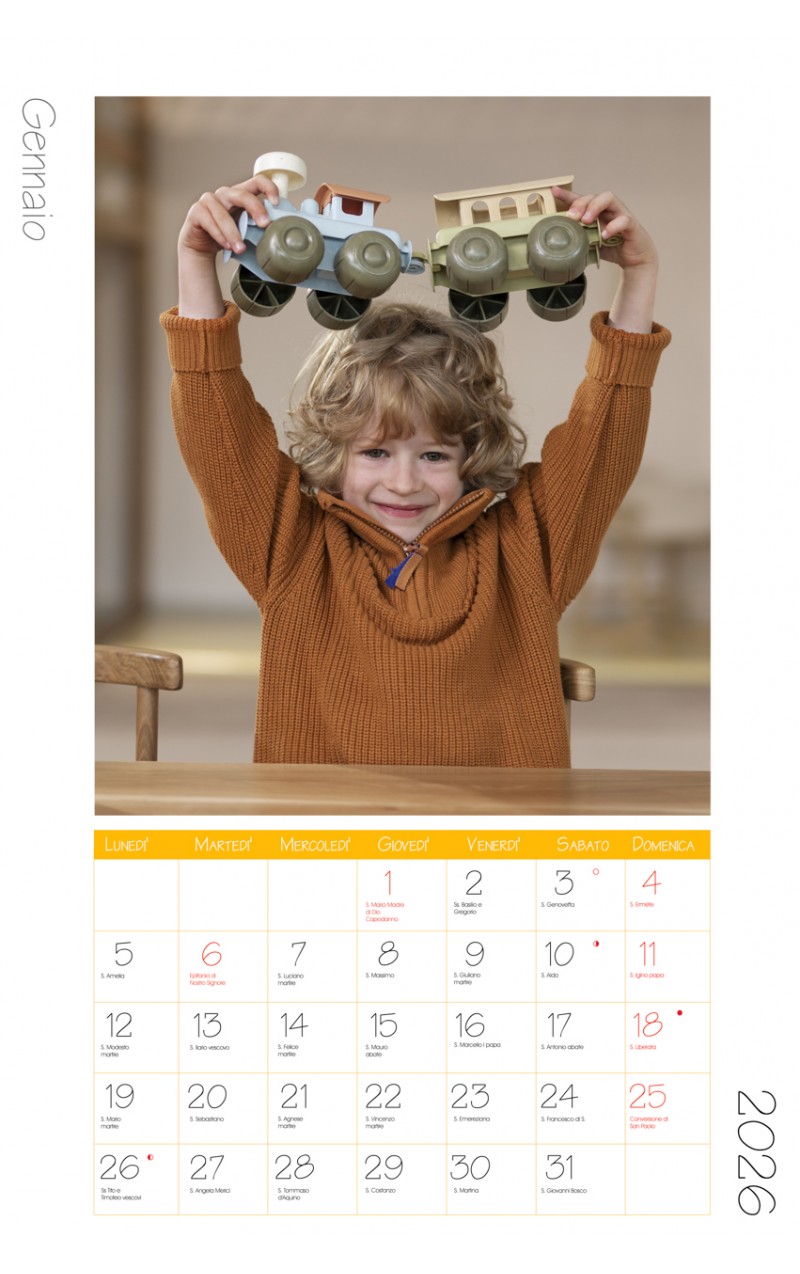 Il Fotocalendario 13 pagine viene stampato su Carta Patinata da 200 Gr. nel formato 20x30 o 30x45 e rilegato con spirale e gancio metallico.